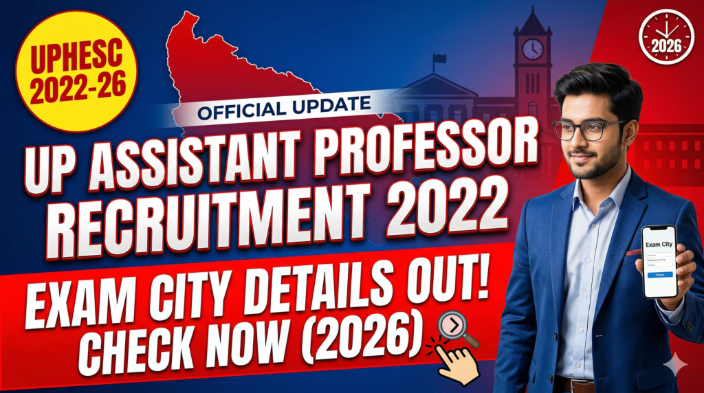 UPHESC द्वारा Assistant Professor Recruitment 2022 के लिए Exam City Details 2026 जारी कर दी गई है। जिन उम्मीदवारों ने आवेदन किया था वे अब अपनी परीक्षा शहर की जानकारी ऑनलाइन चेक कर सकते हैं।